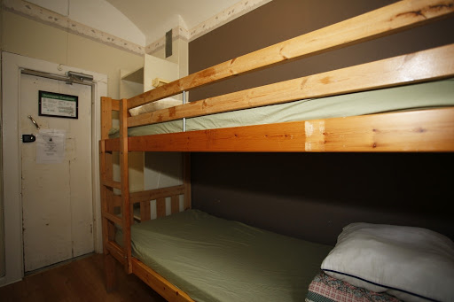 Ett litet rum på mellanvåningen med en dubbelsäng på 8kvm.